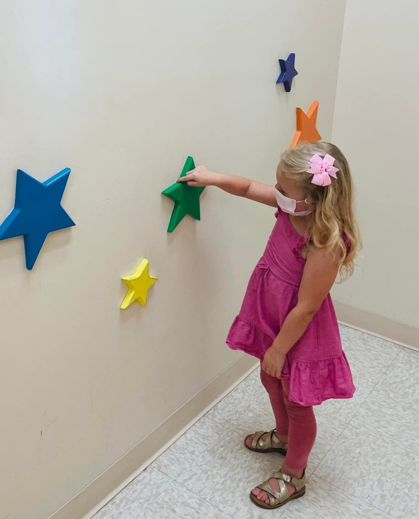 As I finished checking out I just had to get a picture of Abigail finger-tracing the stars on the wall of her pediatrician’s office. In those few seconds my mind traveled back to standing in close to the same spot about 3 years ago. At that time my daughter Rachel was doing the checking out and I was holding Abbie. We had been going over basic shapes for some time and I was showing her one and saying “star.” To my surprise she said it right back..”star”…and Rachel came right over to drink in the moment! Rachel and Fabio had always been good at making the most of even the seemingly small moments. Today I could almost close my eyes and feel Rachel there and I was so thankful for that memory. I was sure to tell Abigail the story of seeing the stars and how she said “star” for the first time when she was just a baby.