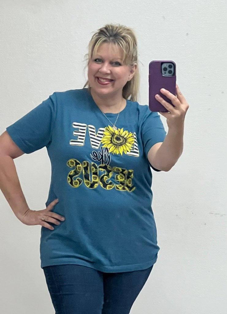 This past Thanksgiving week was FILLED with food, family, making music, missing my Nicole and my Ryan who were with their spouses and families but still keeping tabs on them via phone, text, and FaceTime, making new memories…..and walking through old memories of Rachel. We had gone up to see relatives in North Florida which was something Rachel loved doing. In fact, she wanted to move back so badly to where she spent time as a little girl. This particular time hit me so hard. I honestly didn’t want to leave and I would have preferred to sink backwards in time. My grief was getting darker and becoming a force to be reckoned with, accompanied by anxiety, symptoms of the aphasia I was miraculously healed of April 30 trying to return, doubt, fear, confusion, and anger. Honestly my plan for today was to drop Abbie off at school and then escape through sleep but my husband the Lord had other plans. I spent a good portion of the morning getting our title/tag transferred for the vehicle I was blessed with by my SISTER (in law), which I must say is as close as blood could get to being a biological sibling to me. Honestly, there is no doubt that she would probably do anything to protect our family and we are so grateful for that. But there was no way anyone could know the depths of despair I was going through by Sunday night—-thank you Jesus for two Armor Bearer Sisters in Christ that listened to me patiently and allowed me to be transparent. What they didn’t understand, they just prayed for. Late this evening as I was going through a particular date of photos on my cell phone I found something that felt like Jesus was allowing Rachel to wink and giggle at me through time! See, a few months ago a dear lady from Church gifted me a cute T-shirt with sunflowers and the words “Love like Jesus.” In my mind I “knew” I had seen it somewhere before but couldn’t place it. I even looked online for it! But guess what? I got my answer. From a photo in March 2022, I saw my Rachel with me in a nail salon where we were getting pedicures (probably for her March birthday) and guess what she was wearing?! Thank you GOD that Your timing is never late (it’s not early either) but You alone lift my burdens!