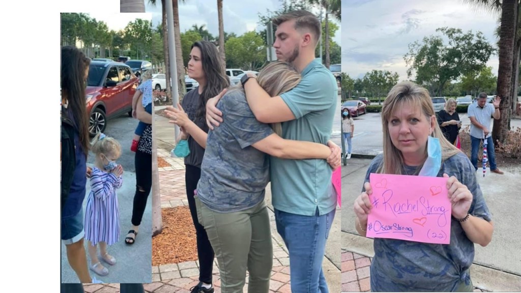 My husband never and I mean never would cancel Church; however, he did decide to hold three weeks of Sunday night prayer and praise rallies in the hospital parking lot. Our daughter was not the only Church member fighting for her life. Oscar, one of our adult Sunday School teachers, was as well. People made signs showing their support. Word spread and at least eight local Churches were represented during these rallies. Although we were no longer Covid positive, we were still weak physically. It was so very hard to stand during these rallies but I was determined. Nevertheless, I found myself leaving on a light pole or having to sit part of the time.